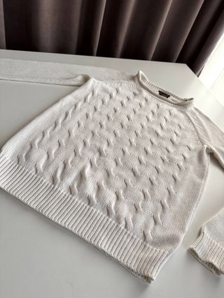 Jersey de Massimo Dutti. Talla 34 XS. 100% aldogón. Color blanco. Puesto en 2-3 ocasiones, está nuevo.