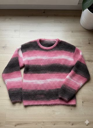 ¡Precioso jersey de punto con textura suave y colores vibrantes! 💖 Se trata de una prenda de corte cómodo y moderno, ideal para darle color al invierno. Está nuevo, nunca se ha usado, pero tiene un detalle que debes conocer (puedes verlo en las últimas fotos). Estado: Nuevo sin etiquetas. Talla: M (queda genial tanto entallado como un poco más oversize si usas S). Tejido: Punto suave con efecto ligeramente peludito/mohair. Medidas:48 cm sisa, 62 cm de largo Detalle importante: Presenta un pequeño salto de punto en una de las mangas (un enganche de fabricación). Es algo mínimo que se puede arreglar fácilmente con una aguja o dej