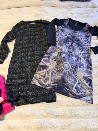 Conjunto de prendas de ropa de invierno para mujer. - Jersey de cuello alto en color rosa pálido. - Jersey negro con detalles brillantes. - vestido custo - vestido formal - Chaqueta acolchada en color fucsia. Talla M / L En muy buen estado