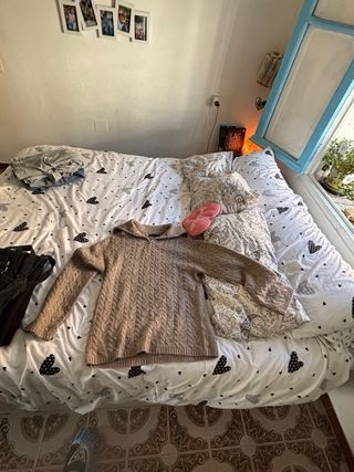 💰 PRECIO NEGOCIABLE 💰 Vendo jersey de punto de la marca Springfield, muy cómodo y con un diseño original. Es una prenda ideal para el frío gracias a su grosor medio-alto, que ofrece un buen abrigo sin perder el estilo. DETALLES DESTACADOS: - Diseño: Estampado geométrico de estilo étnico/boho en tonos crudo y azul oscuro. - Toque de brillo: Incorpora pequeñas lentejuelas azules entretejidas que captan la luz de forma sutil y elegante (ver fotos de detalle). - Tejido: Punto de calidad con cuerpo, ideal para invierno. - Corte: Cuello redondo y manga larga. #jersey #springfield #tallaXL #modamujer #punto #boho #lentejuelas