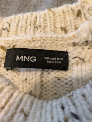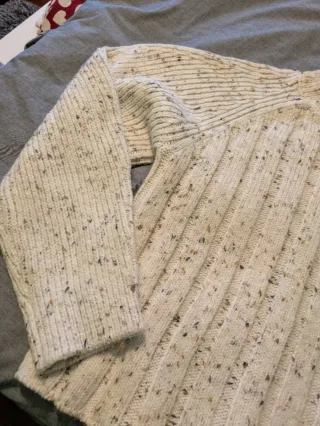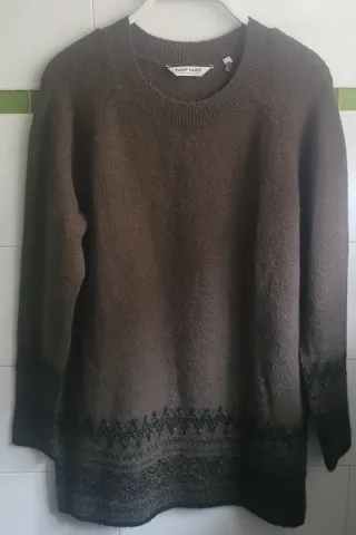 Precioso jersey de punto. Es abrigado aunque el punto no sea muy grueso. Tiene un tacto muy agradable. Es talla única y mangas tipo murciélago. La pedrería del pecho es un plus. No tiene apenas uso. Mira en mi armario, estoy poniendo muchas prendas para éste invierno 🌎