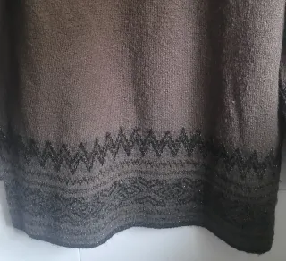 Jersey largo de invierno con un llamativo estampado geométrico. Marca talla S pero es grande, sirve talla 38,40. - Diseño de rombos y cruces. - Cuello redondo. - Manga larga. - Bajo y puños en negro.