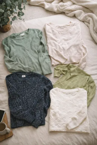 PRECIO HASTA FEBRERO POR mudanza. Después no estará disponible. Lote 5 suéteres jersey talla S mujer – beige, verde y gris Vendo lote de 5 suéteres de punto, ideales para otoño/invierno. Todos en talla S, cómodos y fáciles de combinar. En buen estado. Incluye: Suéter beige claro Marca: Casual Basic Talla: S Punto fino, cuello redondo, básico y versátil. Usado Suéter verde oliva Marca: L.O.G.G. (H&M) Talla: S Tejido suave, estilo casual, perfecto para diario. Usado Suéter verde claro Marca: Marca local Talla: S Punto ligero, cómodo y sencillo. Nuevo sin usar Suéter gris jaspeado Marca: Marca local Talla: S Tejido