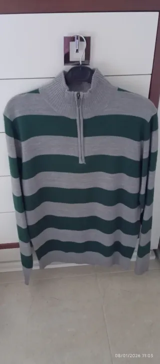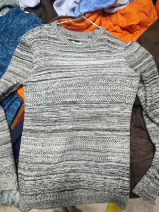 Jersey de punto con un diseño de rayas verticales sutiles. Es una prenda cómoda y versátil. - Cuello redondo. - Puños y bajo elásticos. ✅ | NUEVO. 👥 | Escuchando tus preguntas. 📦 | Envió rápido, ordenado y limpio. 🤝 | Si eres de Madrid te lo puedo dar en persona también.