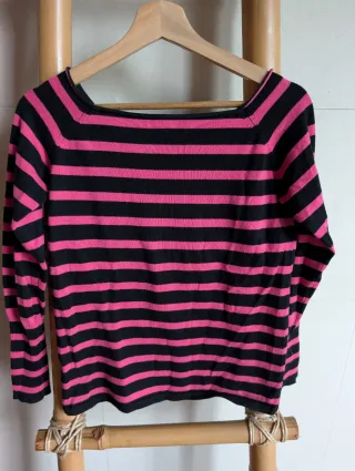 Jersey de punto con un diseño de rayas horizontales en color rosa fucsia y negro. Tiene un escote cuadrado. - Manga larga. - Tejido suave y cómodo.