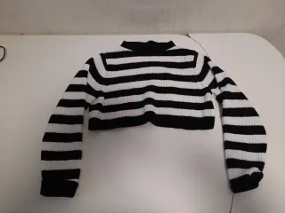 👚 Jersey corto de rayas blancas y negras cuello alto Pull&Bear 🏷 Talla M 📏 Medidas: 33 ancho (hombro a hombro) | 45 largo | 59 manga ✅️ En muy buen estado