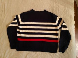 Jersey de manga larga con diseño de rayas horizontales. Tiene unas pequeñas manchas de lejía, pero no son muy notorias  - Cuello redondo. - Detalle de logo en el pecho. - Puños y bajo acanalados. Original Venta persona
