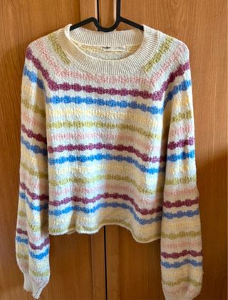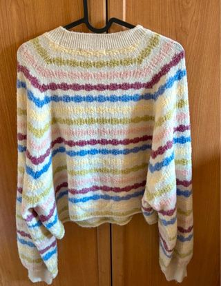 Jersey de punto Shein con rayas de colores. Talla S. Nuevo, puesto una vez!! - Diseño de rayas horizontales. - Manga larga abullonada. - Cuello redondo. Medidas: Largo 39 cm Ancho axilas 50 cm