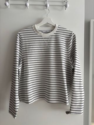 Jersey de punto con un diseño clásico de rayas horizontales. No me lo he puesto nunca😩 - Diseño de rayas en blanco y negro. - Tejido de punto. - Manga larga.