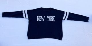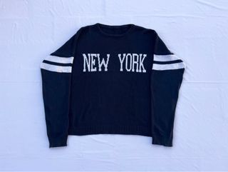 Jersey de punto en color azul marino con lettering “New York” y detalle de rayas en las mangas de la marca BRANDY MELVILLE. Comprado en la tienda de Brandy, aunque no conserva la etiqueta. Talla única BRANDY MELVILLE, equivalente a una S y queda ligeramente oversize. #newyork #brandy #brandymelville #jersey #knit #streetstyle