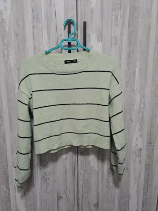 Jersey Zara Rayas Verde y Blanco Talla XS