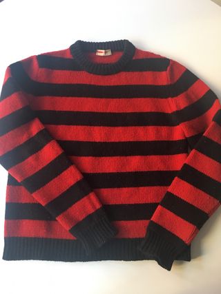 ✅ En muy buen estado ‼️ Tiene una pequeña manchita que seguramente sale con quitamanchas ⭐️ Producto original, comprado en tienda oficial de primera línea de producción. Nada de outlet, reventa, imitaciones ni segunda mano. 📦 Envío 24/48h o recogida presencial en Barcelona Jersey de punto con diseño de rayas horizontales. - Cuello redondo. - Manga larga. - Puños y bajo de canalé.