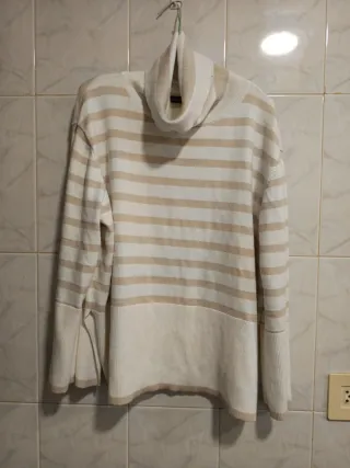 Jersey de punto con cuello alto y diseño de rayas horizontales. Usado solo un par de veces. Talla L Material muy suave. No pica