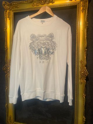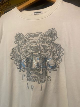 Jersey de la marca Kenzo en talla M. Presenta un diseño gráfico de tigre en la parte frontal. - Diseño de tigre. - Cuello redondo. - Manga larga.