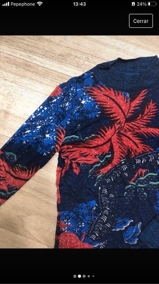 precioso jersey sueter talla M con etiqueta sin estrenar, marca Desigual original, colores muy alegres y combinables, tonos naranjas, burdeos. Me costó 54€. Tengo otro en tonos azules y verdes en mi perfil puesto un par de veces. Los dos juntos por 40€, uno por 25€. También estoy en cpostal 46009.