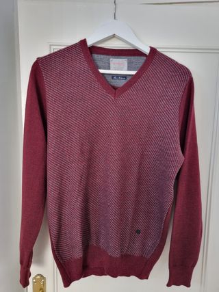 Jersey Mirto Classic Line, 100% lana lambswool, talla M. Suave, cálido y en perfecto estado, sin bolitas ni desgaste. Corte clásico con cuello pico y color rosa frambuesa intenso, tal como se ve en la foto. Prenda de calidad, duradera y con excelente tacto. Ideal para invierno y entretiempo. Perfecto para quien busca lana auténtica y un acabado premium. lana, lambswool, jersey hombre, Mirto, cuello pico, clásico, premium, M.