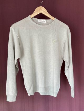 Bonito jersey de punto fino adecuado para entretiempo. Está impecable pues apenas se ha usado . Muy buena calidad. No pone talla, las medidas son: De hombro a hombro 49 cm De sisa a sisa 49 cm Largo 60 cm Equivale a una talla M Color gris perla
