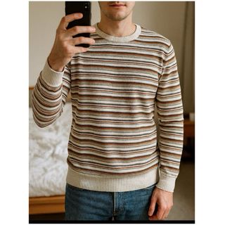 Jersey de hombre Springfield, talla M. Punto fino en color crudo con rayas marrón, ocre y burdeos. Ideal para otoño/invierno y entretiempo. ✅ Muy buen estado, sin bolitas ni manchas ✅ Tejido suave y cómodo con un poco de elasticidad ✅ Corte recto clásico, fácil de combinar con vaqueros