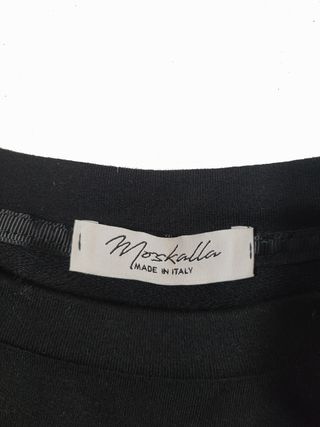 Moskalla/ Sudadera negra oversize estampado letras talla L- XL. (no tiene etiqueta de talla ni composición, por favor comprobar las medidas. Escote redondo, hombros caídos. Tejido doble jersey de entretiempo, composición: algodón y poliéster. Ancho de hombros: 66 cm- Ancho de pecho: 66 cm. Largo: 69 cm. Largo de mangas: 47 cm. En muy buen estado, sin faltas. Made in Italy.