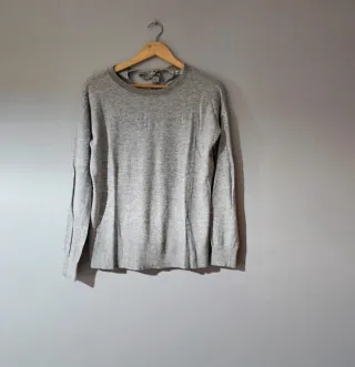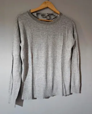 Jersey de punto fino en color gris. Presenta un detalle de lazo en la espalda que le da un toque especial. - Manga larga. - Cuello redondo. - Diseño abierto en la espalda con lazo. Muy buen Estado PRECIO NO NEGOCIABLE SOLO ENVÍOS. NO ENTREGÓ EN MANO Hablar conmigo antes de comprar. Gracias