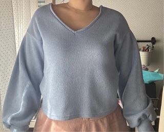 Jersey cuello pico azul claro talla S
