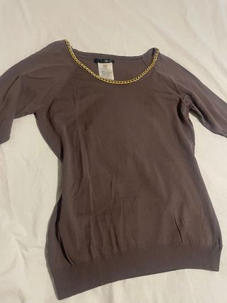 Jersey de punto con detalle de cadena dorada en el cuello. Inpecable. - Cuello redondo. - Manga al codo - Diseño de punto fino.