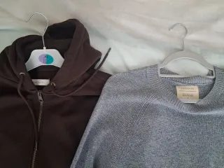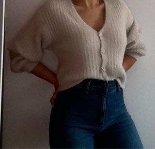 Conjunto de dos prendas de vestir de la marca Cortefiel. - Jersey de punto fino. - Cárdigan con cierre de cremallera (tiene pocos usos).
