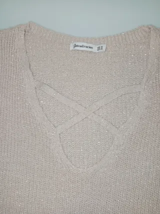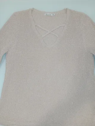 Jersey de punto fino con detalles brillantes. Escote cruzado en V. Talla M