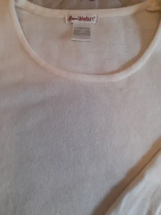 Jersey de punto, fino, suave, muy agradable al tacto. Casi sin usar. - Cuello redondo. - Puños y bajo con detalle de ribete blanco. - Manga larga.