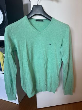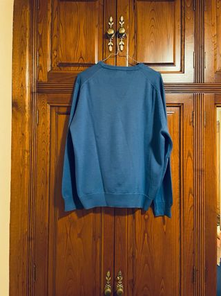 Jersey de punto fino con cuello en pico, nunca se ha utilizado. Se compró y a mi marido no le acaba de gustar como le queda.