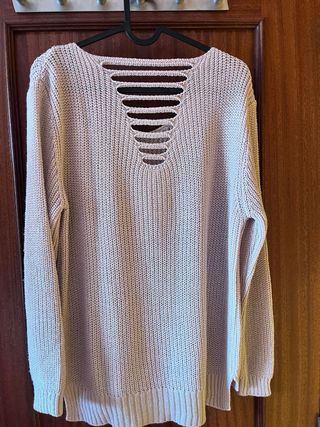 Jersey de punto fino en color rosa palo. Presenta un diseño moderno con aberturas en la espalda. - Tejido de punto. - Diseño con cortes en la espalda.