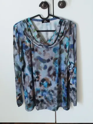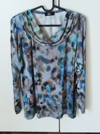 Jersey fino con un estampado abstracto y cuello tipo cascada. - Manga larga. - Tejido ligero y cómodo.