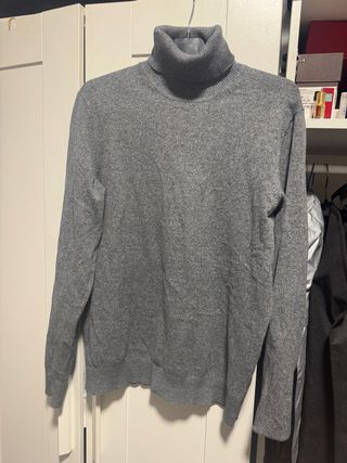 Jersey de punto fino en color gris. Ideal para el día a día. Talla en pequeño. - Cuello alto. - Manga larga. - Bajo y puños con detalle. - Tejido suave.