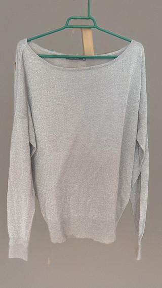 Jersey de punto fino con un toque brillante. Su diseño es versátil y cómodo. - Cuello barco. - Manga larga. - Tejido ligero con hilo metalizado.