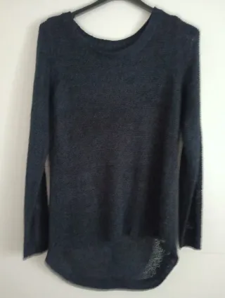 Jersey de punto fino de Zara, ideal para un look casual. - Diseño de cuello redondo. - Manga larga. - Bajo asimétrico.