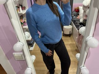 Jersey de punto fino en color azul. - Cuello redondo. - Manga larga. - Tejido suave y cómodo.
