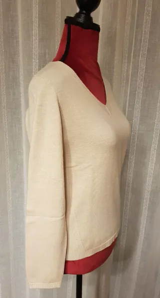 - Bonito jersey de punto fino para mujer. - Como nuevo, usado un par de veces. - Ideal para entretiempo, o para poner sobre un polo. - Manga larga. - Cuello redondo. - Bajo y puños de canalé. * Más artículos en mi perfil.
