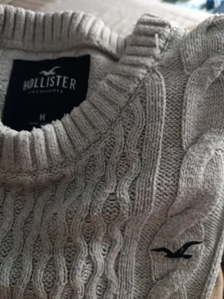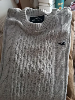 Jersey de punto fino con un diseño texturizado. Usado en muy pocas ocasiones. 68cm largo desde cuello por delante. Y 66 vm de manga desde costura del hombro. Se puede probar en Boadilla, Moncloa, Leganes. - Cuello redondo. - Logo de Hollister bordado en el pecho. - Manga larga.
