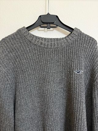 Jersey de punto Hollister en color gris. Presenta un diseño de canalé y el icónico logo de la marca bordado en azul. - Logo de Hollister bordado en azul. - Tejido de punto con textura acanalada. Aunque marca XL puede servir tanto M como L Tal y como se muestra. No se admiten devoluciones
