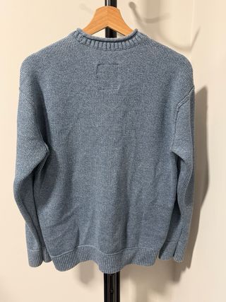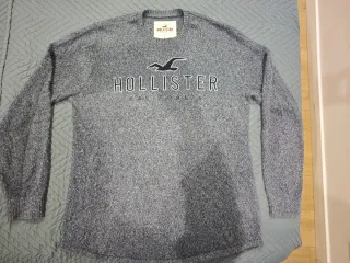 Jersey de punto para hombre de la marca Hollister. Diseño clásico y cómodo. - Logo de Hollister en el pecho. - Cuello redondo. - Tejido suave y agradable. - La tela no es muy gordita (última foto) pero da bastante calor. - Color azul oscuro mezclado con color claro. - Es una talla L pero queda holgado. Podría valer para una XL más ceñido.