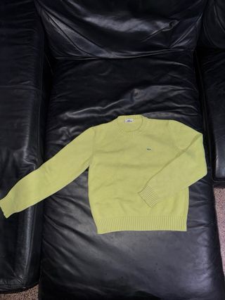 Jersey de punto de la marca Lacoste en un llamativo color verde y amarillo. - Diseño clásico de cuello redondo. - Logo de Lacoste bordado en el pecho. - En muy buen estado, la vendo porque ponía que es una S pero es como una XS (me viene pequeña) ORIGINAL