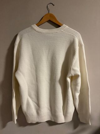 Jersey de lana de la marca Lacoste en color beige. Presenta un tejido texturizado con un pequeño logo bordado en el pecho. - Cuello redondo. - Manga larga. - Puños y bajo acanalados. Talla S que es como una M. Comprado hace dos años en El Corte Ingles. PVP 210€. Quita mucho frio 100% lana.