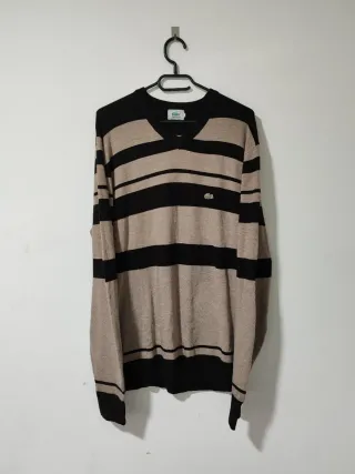 Jersey Lacoste Rayas Beige y Negro Talla L