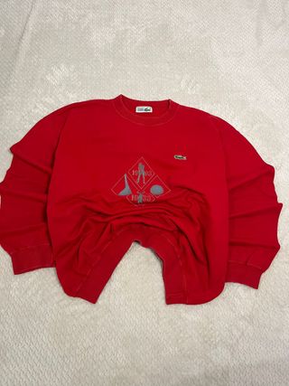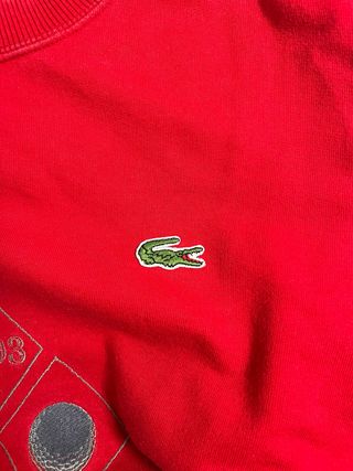⚡ Jersey / sudadera Lacoste oversize de estilo clásico con estética retro/Y2K. 🧵 Talla 6 Lacoste (equivale aproximadamente a talla XL internacional, fit oversize). 📏 Medidas: se pueden ver en las fotos. 🎨 Color: Rojo intenso. ✅ Estado: Perfecto estado, sin desperfectos visibles. 📝 Detalles: Tejido tipo felpa, cuello redondo, logo Lacoste bordado en el pecho y gráfico frontal, corte amplio ideal para looks streetwear y vintage. ⚠️ No se admiten devoluciones. Revisar bien medidas y posibles desperfectos visibles en las fotos. Para cualquier duda, pregunta antes de comprar. #lacoste #lacostesweatshirt #oversize #classicstyle