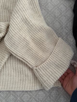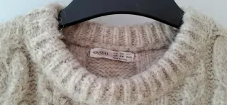 Jersey de lana grueso con trenzas, ideal para un look casual y abrigado. Marca Oysho. Talla S/M ( es grande y ancho) - Diseño con trenzas. - Cuello redondo. - Manga larga. - Tejido suave y cálido.