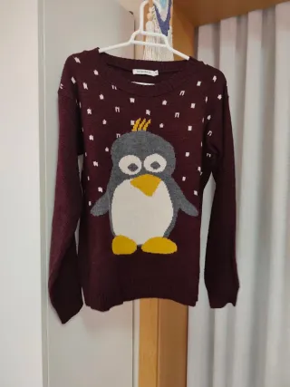 Jersey de lana, con poco uso. Tonos burdeos y blanco.