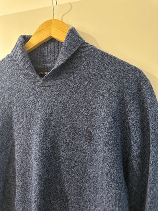 Suéter de punto Cortefiel de color azul. Es de cuello mao y tiene un diseño de textura ligeramente irregular. - Talla: L 100% lana