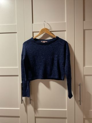 Jersey de punto fino de la marca Scalpers. - Color azul oscuro. - Diseño de cuello redondo. - De algodón, pero da una sensación como de lana fina.