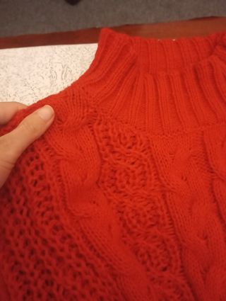 Jersey de lana de cuello alto en color rojo. Es una prenda cómoda y cálida, perfecta para el invierno. - Tejido de lana suave. - Diseño de cuello alto. - Manga larga.