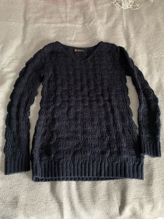 Jersey de lana azul marino de la marca Yikey. - Diseño tejido con textura. - Cuello en V. -lana azul marino - talla s-m - jersey toque diferente -apenas se ha usado -precio negociable